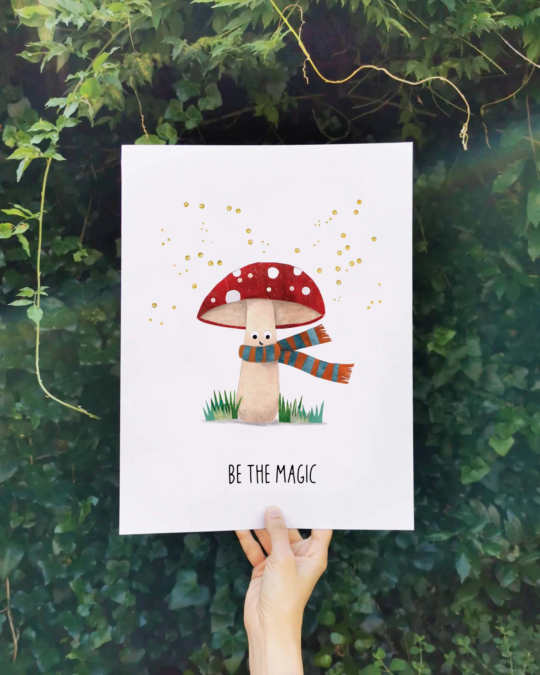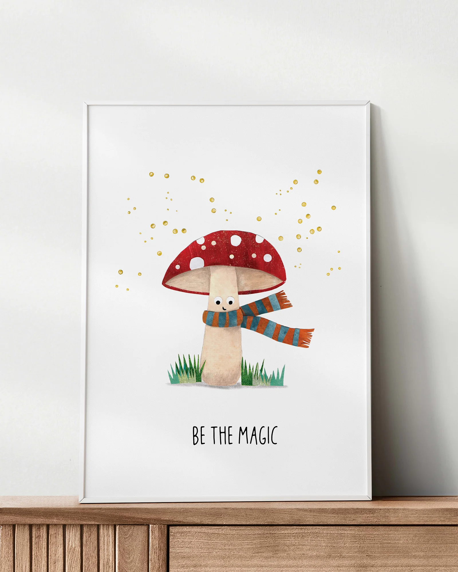 Ilustração “Sê a Magia” emoldurada em moldura branca, decoração naturalIlustração “Sê a Magia”
